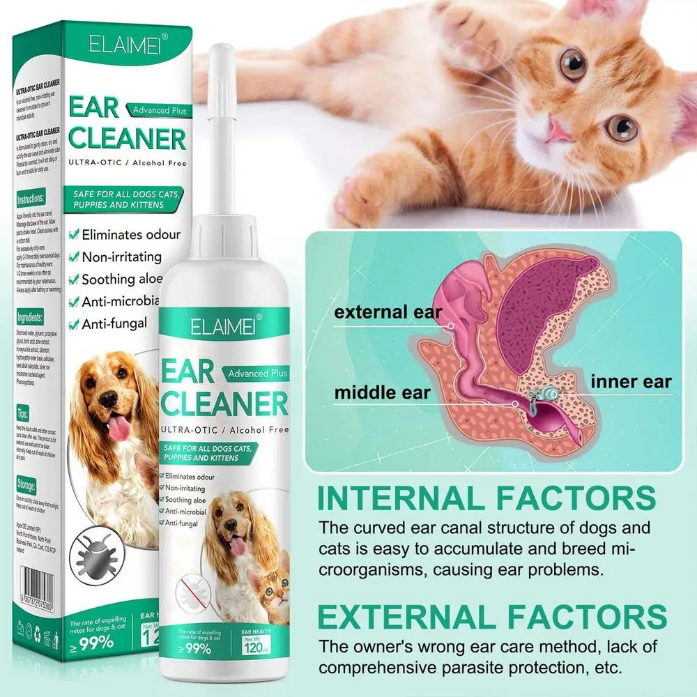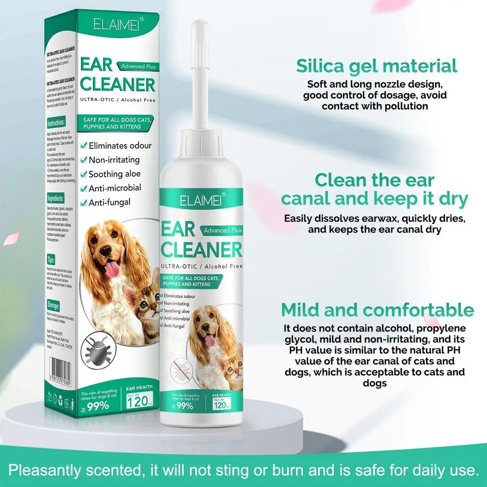 Ear Cleanser For Dogs Cat Ear Rinse 120ml Pet Ear Gentle Cleaning Solution No-Irritating Dog Ear Drops Deodorizing For Cleaning