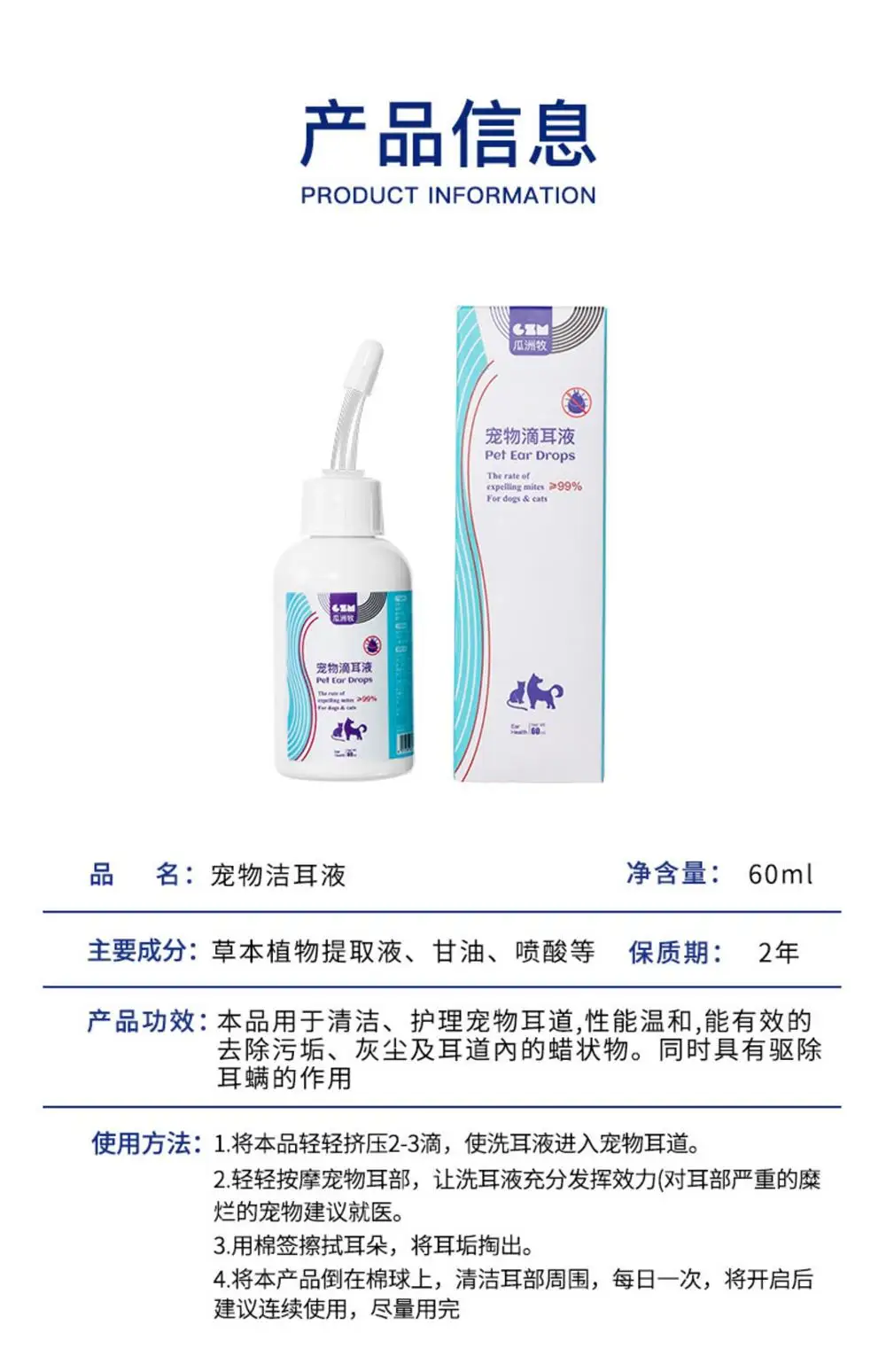 Features: Remove ear mites, clean ear wax, remove ear odor