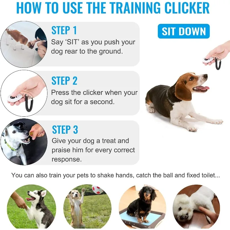 - 🐶【Scientific Training Methods】The training clicker will have the clear sound after pressing the button. Big button for easy clicking and loud sound. Clicker training method is now more and more popular, do not need to beat or make voice by your own. It can make your pets to learn a variety of small tricks, and not easy to forget.
